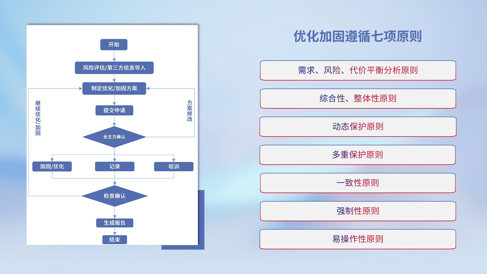 最大程度利用现有资产,,对评估发现的问题进行封堵与整改,,,防止漏洞被利用,,提升整体网络安全性,,,,为客户带来高标准的优化加固服务。。。